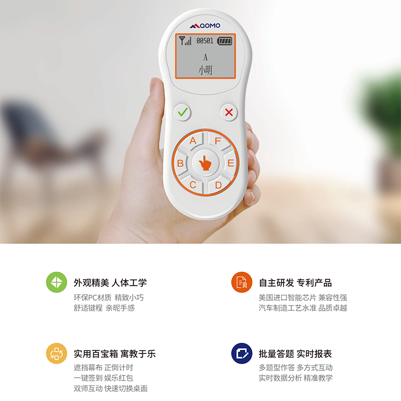 為此,Qomo公司憑借深厚的技術積累,專為現代課堂打造了革命性的QRF888課堂答題器。它以其卓越的“全員同時答題” 能力,精準擊破傳統互動壁壘,為每一堂課注入活力與精準教學的強勁動力。